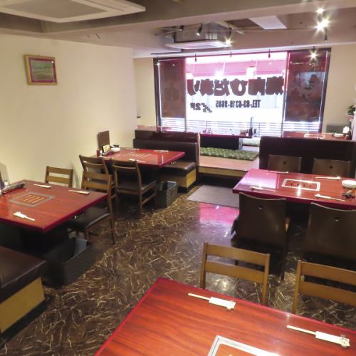 落ち着いた雰囲気の店内でくつろぎのひとときを。店内は木目調のインテリアで統一された、『木』のぬくもり溢れる落ち着いた雰囲気となっております。ゆったりお寛ぎいただけるテーブル席は、様々なシーンに合わせてご利用いただけます!